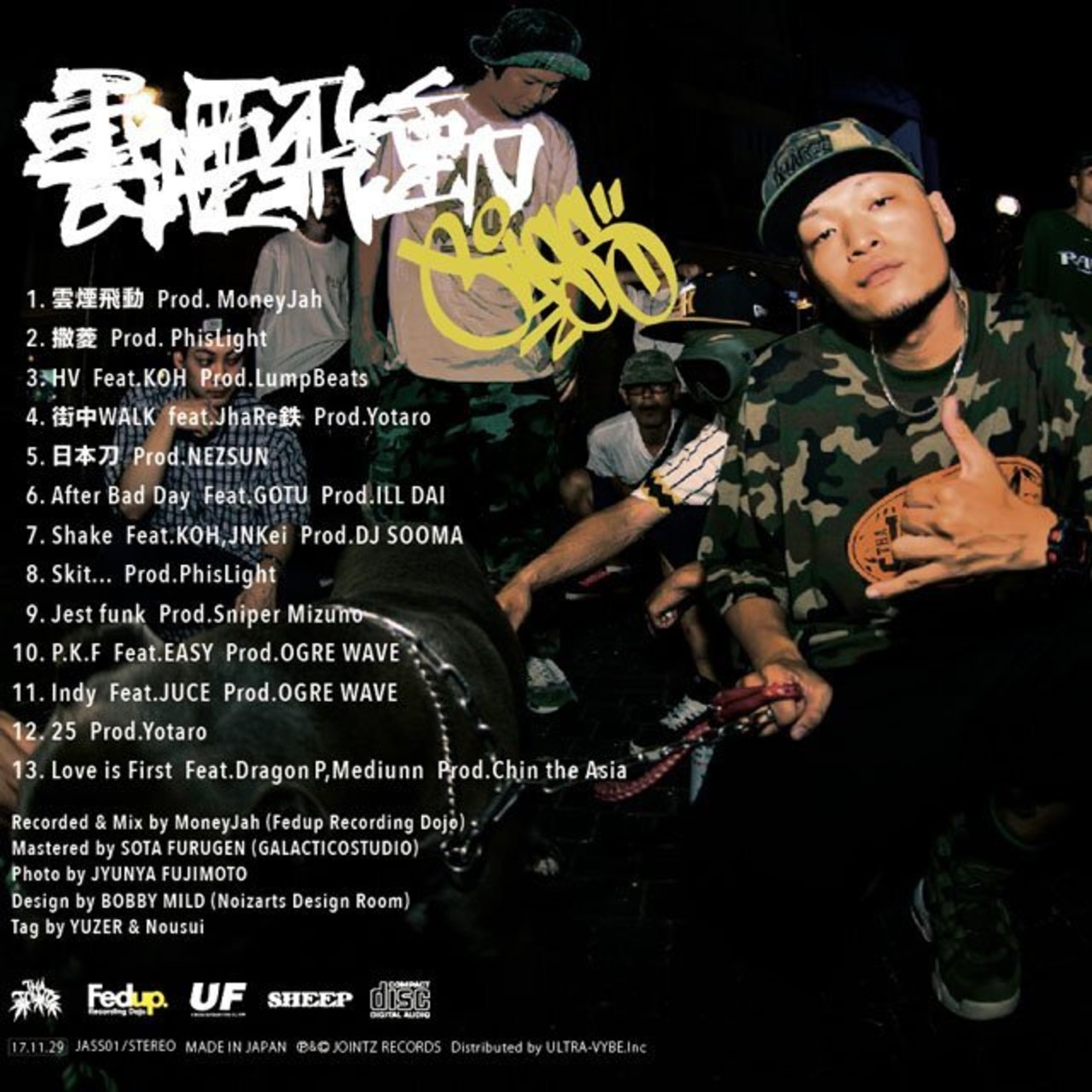 その後、自身も働くHIPHOP gear shop、Fedupの裏の顔、Fedup Recording Dojoにて師範のMoneyJah氏と共に、夜な夜な鍛錬を始める。