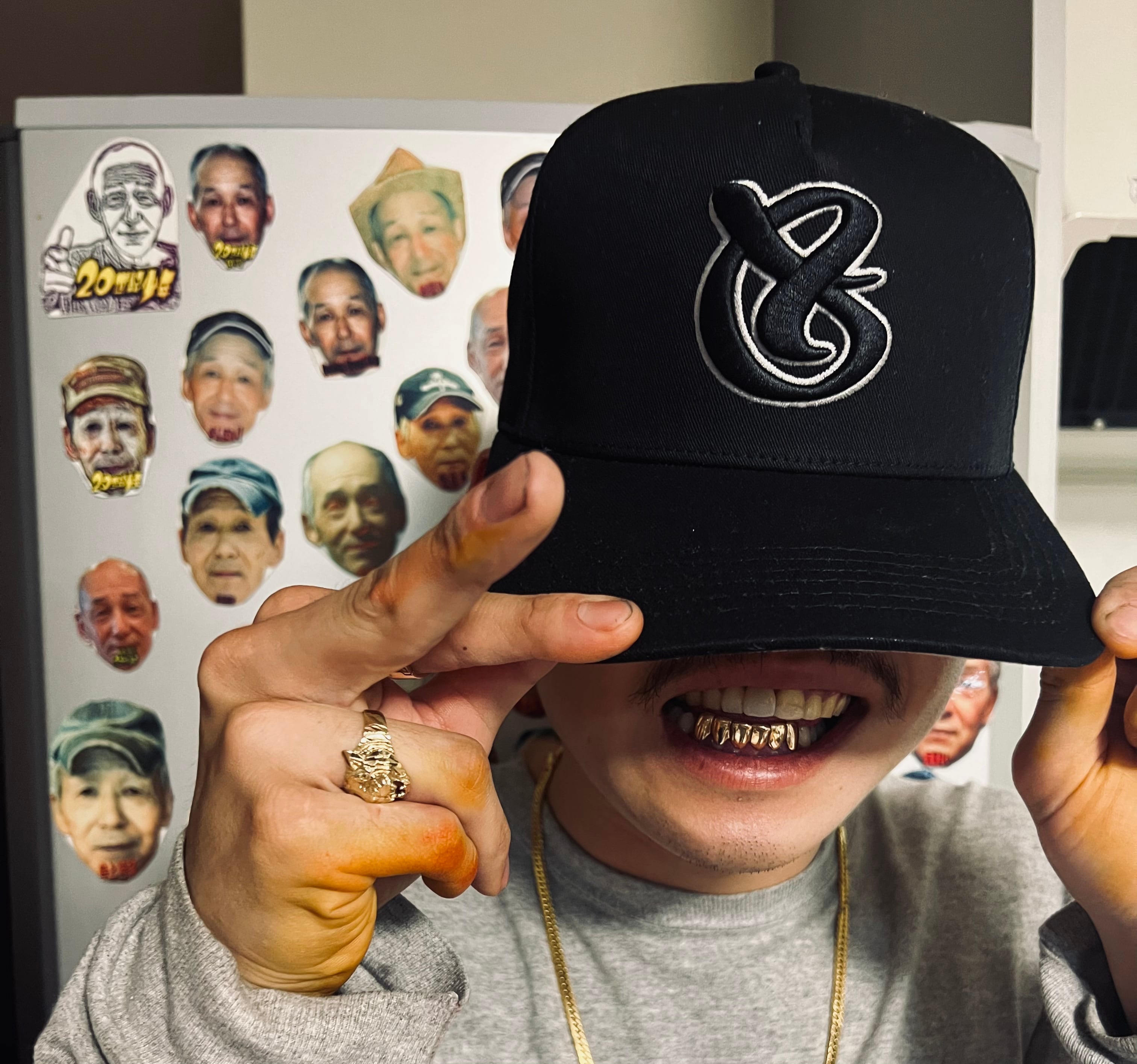 キャップの型から配色までオリジナルで制作した、こだわりのスナップバックキャップです。形は浅めで 、つば広の(Low Profile)タイプなので、どんな頭でもフィットする形となっております。